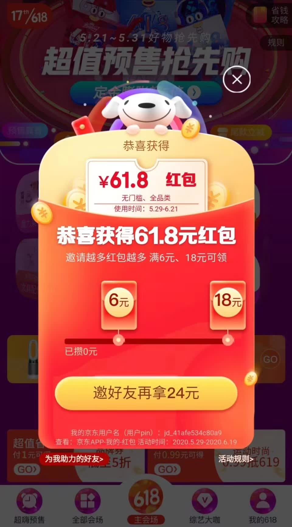 京东618今天红包超级大,超多618元红包,还有iphone大奖,说不定就中了